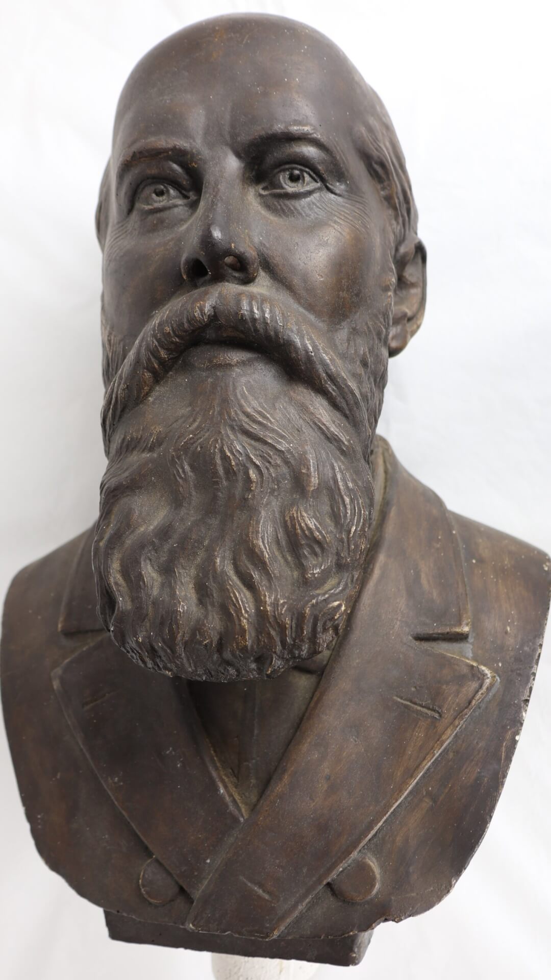 This bust depicts Frederik Lange Grundtvig, the son of the theologian N. F. S. Grundtvig. It was made by Jes Smidt, a skilled carpenter and painter who met F. L. Grundtvig while Grundtvig was a priest in Clinton, Iowa.